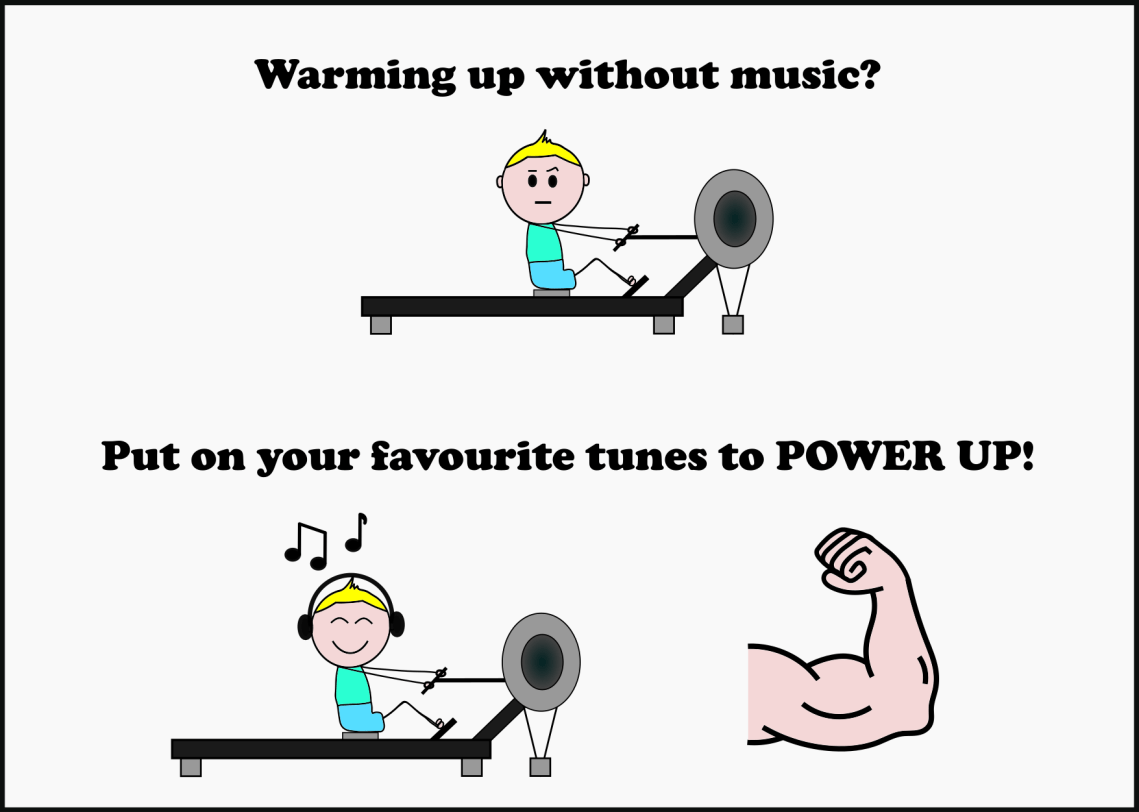12 participants were asked to rank music genres (e.g. rap/hip-hop, rock and roll etc) based on their preference. Using a rowing machine, they then completed a 5-minute warm up whilst listening to either their preferred music (PREF), their least preferred music (NON-PREF), or no music at all. They then completed a 2000m row (without music) as fast as possible and the time taken to complete was compared across all music options.